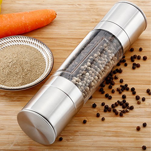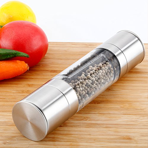 iYaYoo Stainless Steel Manual Salt Pepper Grinder, Double Head Design with Ceramic Grinder Core, Dual Adjustable Coarseness Shakers/Mills