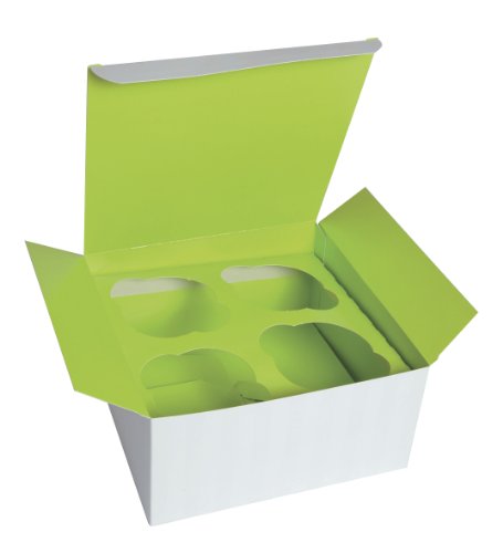 PacknWood 4-Piece Paper Cupcake Box with Green Insert, 6.7" Length x 6.7" Width x 3.35" Height (Case of 100)