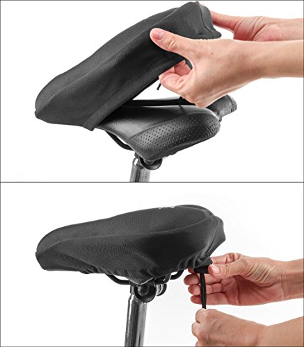 HIGHLY VERSATILE LARGE BIKE SEAT COVER: perfect alternative for wide seats (Pouch Bag & Cyclist Wristband Included)