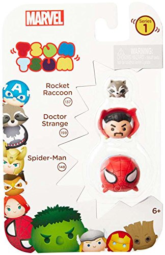 -. Binding : Toy -. Brand : Tsum Tsum -. EAN : 0039897055497 -. Feature : Now you can collect, stack and display a mash-up of all your favorite Disney characters in a totally new, whimsical scale / Pack includes 3 different sized figures (small, medium, and large) / For Ages 6 and up -. IsAdultProduct : 0 -. Label : Jakks -. Manufacturer : Jakks -. Model : 05549 -. MPN : 05549 -. PackageQuantity : 1 -. PartNumber : 05549 -. ProductGroup : Toy -. ProductTypeName : TOYS_AND_GAMES -. Publisher : Jakks -. Studio : Jakks -. Title : Tsum Tsum Marvel 3-Pack: Spiderman/Dr. Strange/Rocket Toy Figure -. UPC : 039897055497 -. Warranty : No Warranty