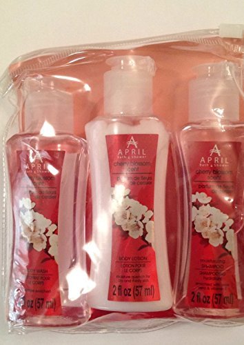 April Bath & Shower Cherry Blossom Scent Body Wash / Body Lotion / Shampoo Set 2 Fl Oz. Each