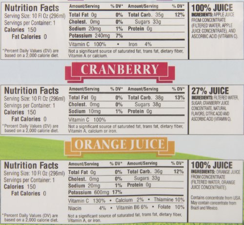 Langers Juice Variety Pack 100% Juice Cocktail, Apple, Orange and Cranberry, 10 Ounce (Pack of 12)