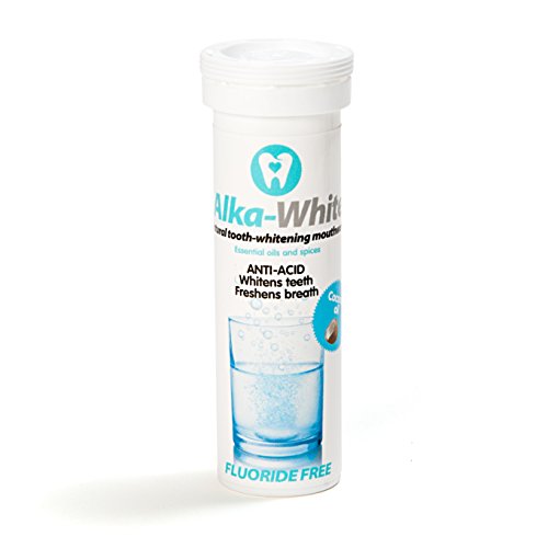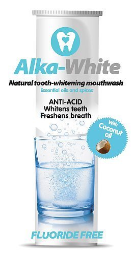 ALKA-WHITE contains Baking Soda, Coconut oil, and essential oils and spices in a convenient, portable tablet form. Pieces of the tablet can be broken off and used direct in the mouth, or drop a whole tablet in warm water. The effervescent mouthwash cleans all the nooks and crannies of the entire oral cavity through a 30 second oil pulling. Brush with the remaining paste to whiten teeth. There is also a version with Turmeric.