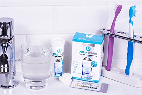 ALKA-WHITE MOUTHWASH is the first natural tooth whitening system that safely brightens your smile without caustic bleach or super-abrasives. The product contains a free pH test monitor and is designed to re-mineralize teeth, thereby making them less sensitive. ALKA-WHITE is a proven anti-acid that creates an alkaline salivary environment which is anti-bacterial, freshens breath, and gently whitens teeth by removing stains. It will not artificially change the natural color of a tooth.
