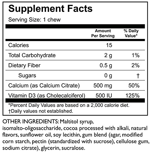Calcium (as Calcium Citrate) 500 mg., Vitamin D 500 IU