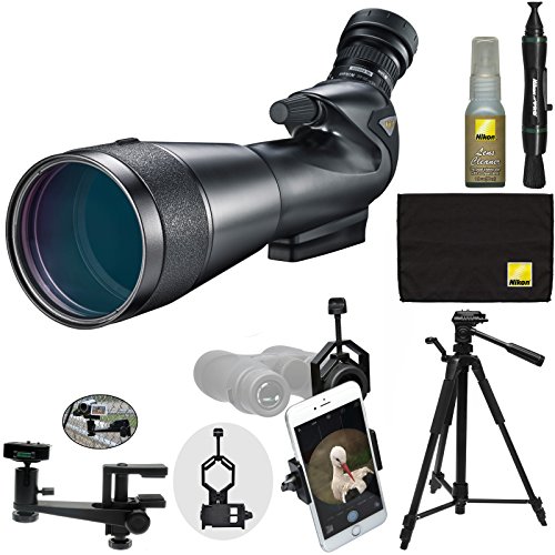 Nikon 20-60x82mm Prostaff 5 Angled Body Fieldscope Spotting Scope with Eyepiece + Tripod + Clamp Mount + Smartphone Adapter + Cleaning Kit