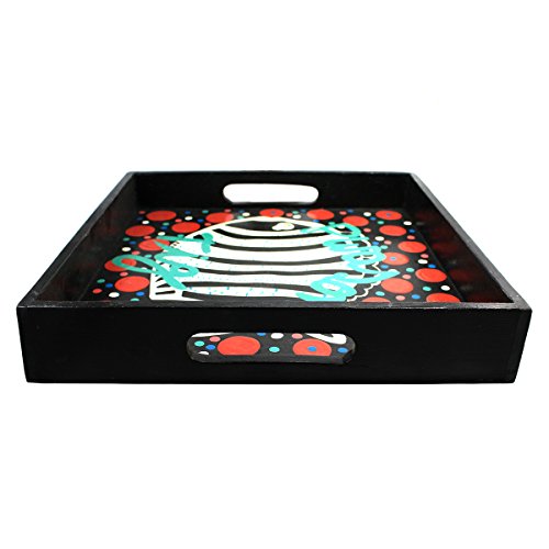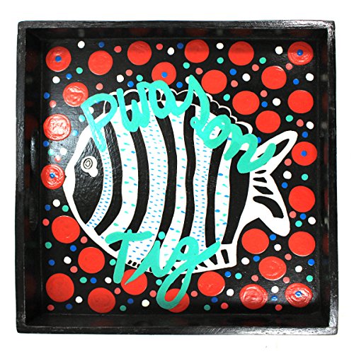 Heart Of Haiti 12 x 12-in Black Wooden Fish Tray, Multicolored