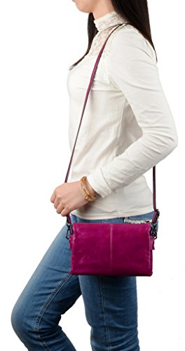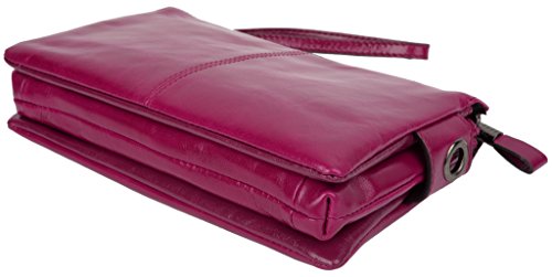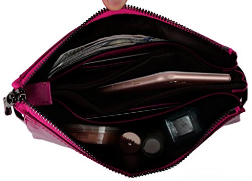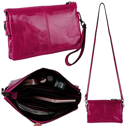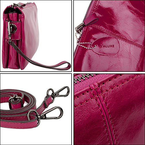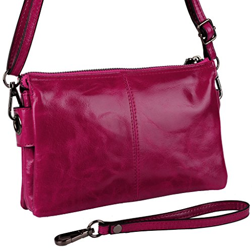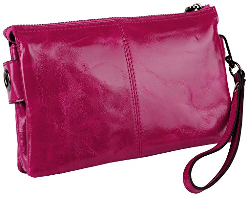 YALUXE Women's Large Capacity Leather Wristlet Clutch Small Shoulder Bag with 6 Card Slots Dark Pink