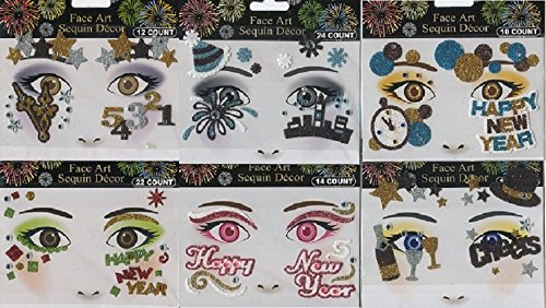 Sequin Face Art Decor New Years Celebration (6 Pack) (New Years)