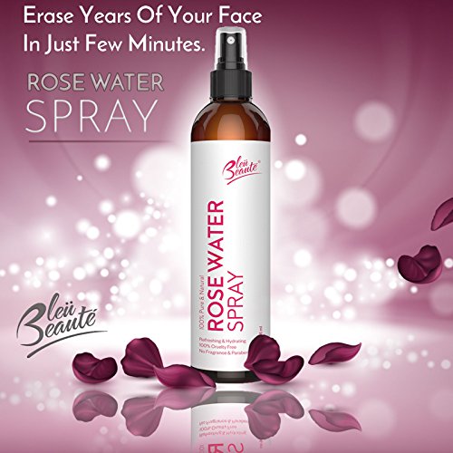 Rose water restores and balances your skin's pH level. Soften and replenish moisture in your face, calm and soothe inflammation and redness around your eyes, treat blackheads and pimples, and unblock stubborn pores. Our Moroccan Rose Water is 100% pure and natural facial toner and cleanser with a tender floral scent. It comes with a fine mist sprayer to make the application easy and enjoyable. After just a few days use your face you instantly feel refreshed and more energetic. Indications Rose water restores and balances your skin's pH level *** Soften and replenish moisture in your face, calm and soothe inflammation and redness around your eyes, treat blackheads and pimples, and unblock stubborn pores *** After just a few sprays onto your face you instantly feel refreshed and more energetic.Feature