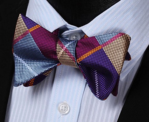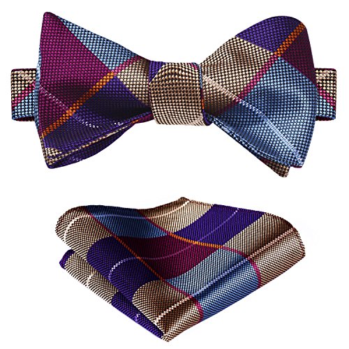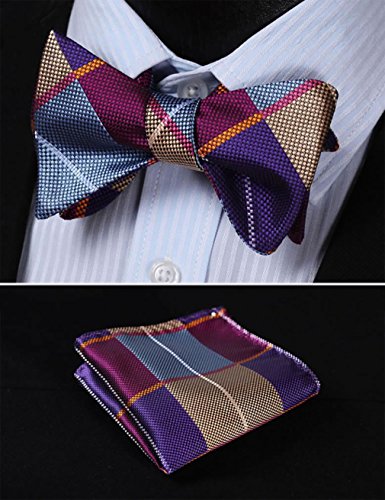 Hisdern hisdern Herren Plaid Jacquard selbst Fliege Set Gr. Einheitsgrosse, Mehrfarbig - Burgundy / Yellow