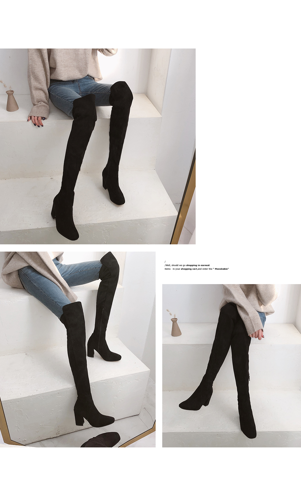 부드러운 스웨이드소재의 니하이부츠입니다.