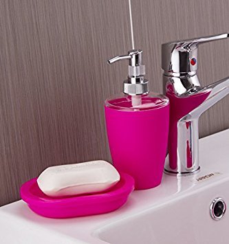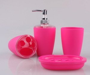 CLASSIC BASIC DESIGN - This classy designed plastic bathroom accessory comes with 1 TUMBLER, 1 TOOTHBRUSH HOLDER, 1 LIQUID SOAP DISPENSER and 1 SOAP DISH