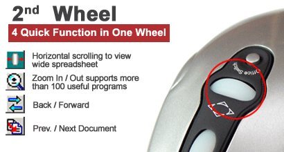Horizontal Scroll - Scroll the page horizontally by using the middle part of your index finger and move to the left and right. With OfficeJump Switch, select up to 8 out of 24 various office command sets such as Copy/Paste, Delete/Reply All, and Zoom in/out. The 2nd wheel offers 4 quick functions: H-scroll, zoom in/out, page up/down, pre/next doc.