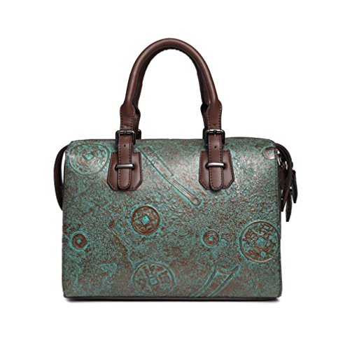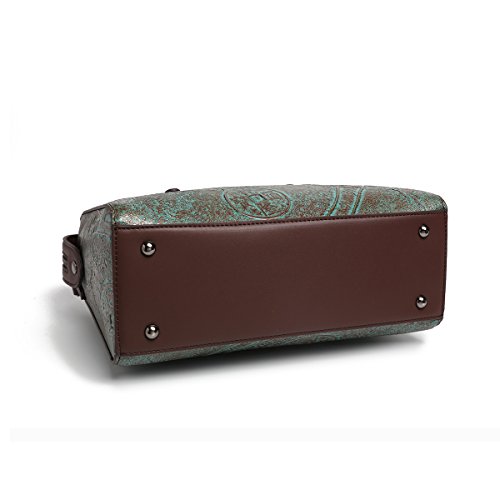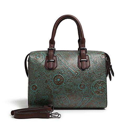 Satispac Women Retro Embossed Handcrafted Vintage Antique Sturdy Tote Handbag Luxury Shoulder Bag