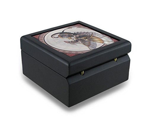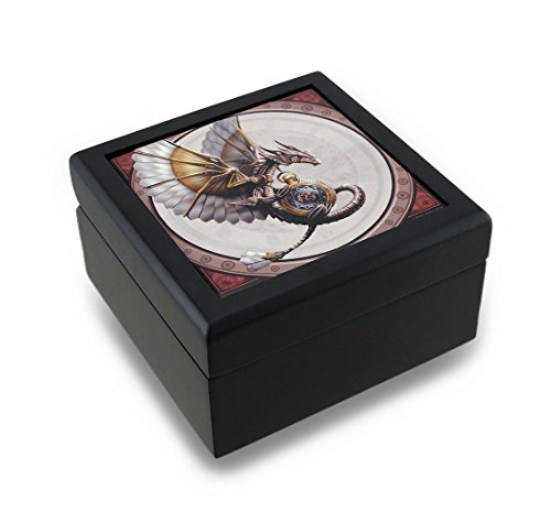 Resin Decorative Boxes Anne Stokes Clockwork Dragon Decorative Art Tile Trinket Box 5 X 3 X 5 Inches Black