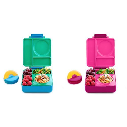 OmieBox Bento Lunch Box With Insulated Thermos For Kids, Meadow and OmieBox Bento Lunch Box With Insulated Thermos For Kids, Pink Berry Bundle