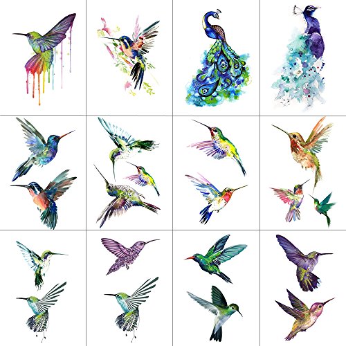 WYUEN 12 PCS Hummingbirds Temporary Tattoo Sticker for Women Men Fashion Body Art Adults Waterproof Hand Fake Tatoo 9.8X6cm W12-13