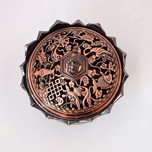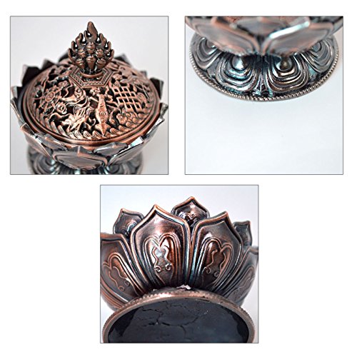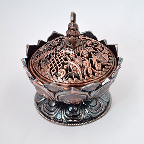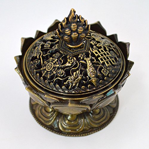 - Exquisitely hand-carved blossom lotus, Auspicious symbol carving bring good luck, elaborately polished Tibetan Style Metal Incense Burner that will last forever.