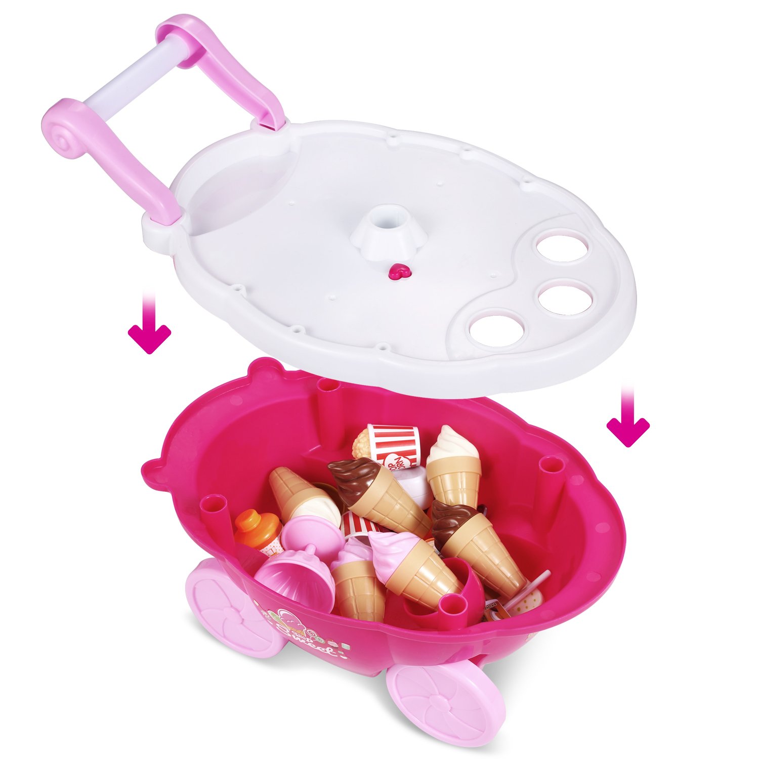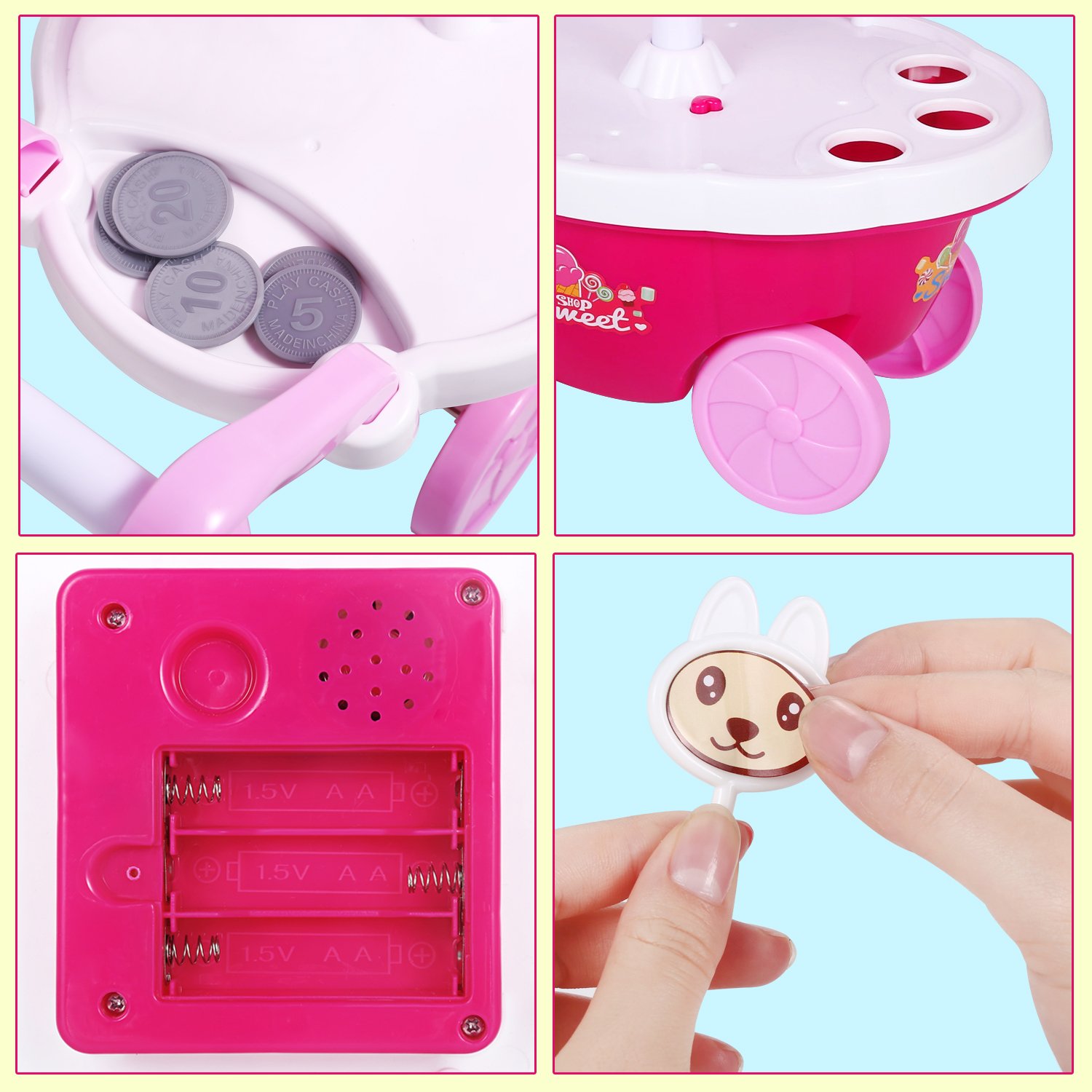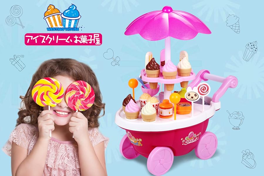 【DIY台紙シール&カラフルなライト付き】 玩具セットの中でかわいいデザインな貼りシールが入っており、子供が自分好きなどころでシールを貼り、さらにアイスクリーム車の中でライトが付き、ボタンを押すとカラフルな光が点灯します、一瞬間子供の注意力を吸い込み、無限の遊び方ができます。