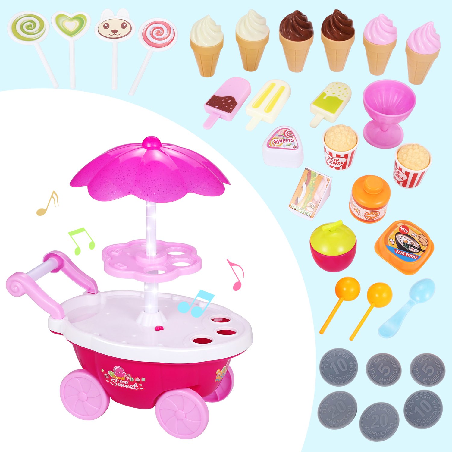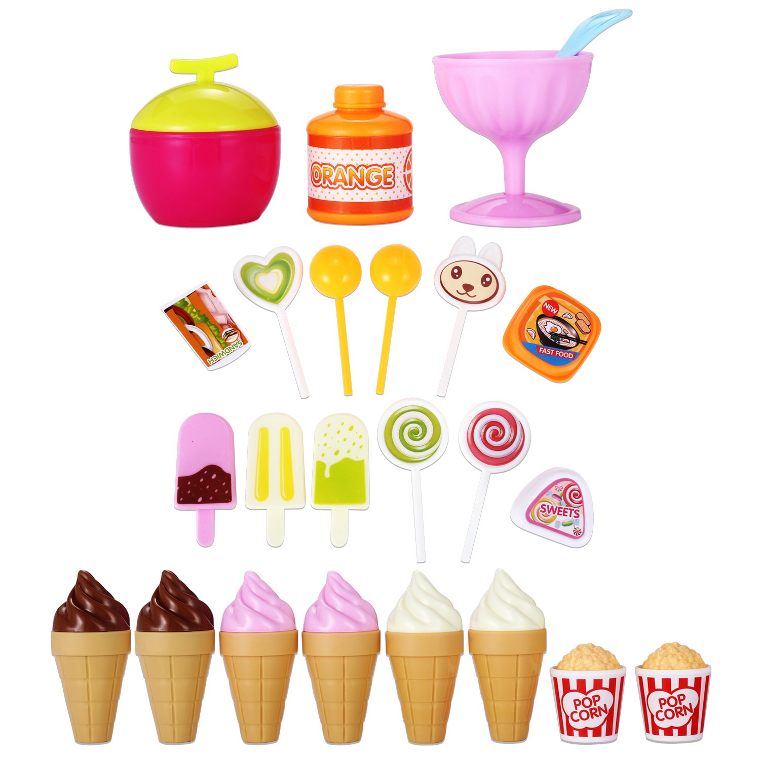 【豊かなお店屋さんセット】 アイスクリーム、ハンバーガー、キャンディ、お弁当、コイン等付きな洋食屋 39pcsセットで、パーツは豊かで、本物そっくりの販売体験を感じさせ、子供の憧れ、お会計とお店屋さんのマネでおままごとをして遊べます。
