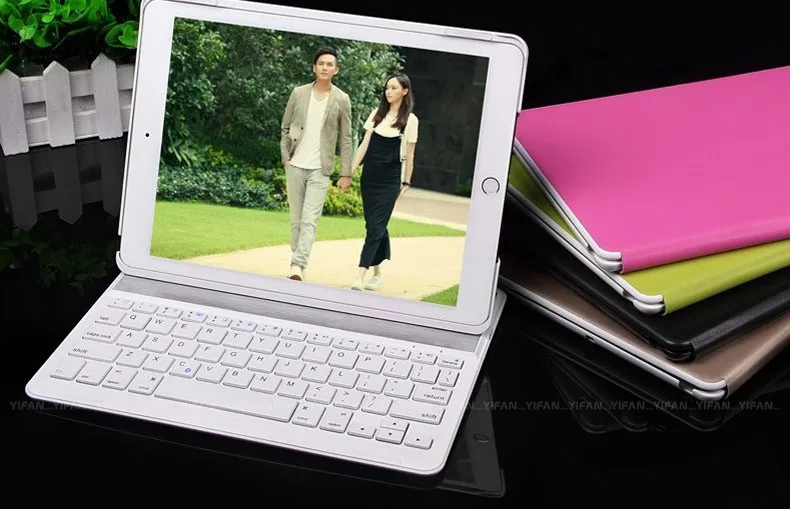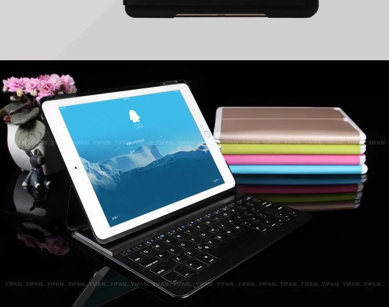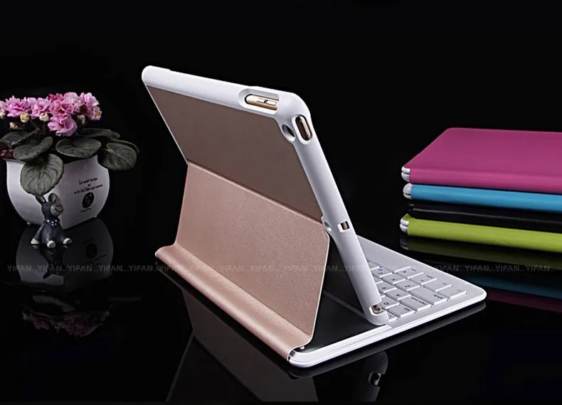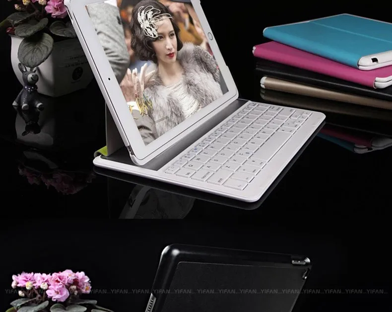 ファッショントップ品質スタイリッシュな極薄のみ8ミリメートルportalbeフリップフォリオワイヤレスbluetooth keybaordでプレミアムレザーケースカバーボーゲンジッツオマンフロットシェル用アップル空気(ipad 5)、付属していますスマートカバー用自動ウェイクアップとスリープ機能、色は利用可能で黒、青、バラの赤、黄金のためのあなたのオプション!
