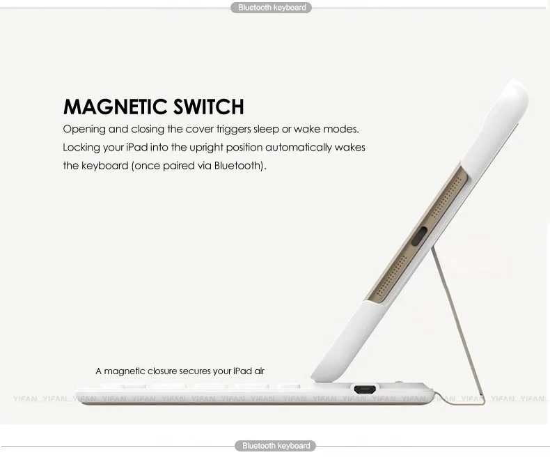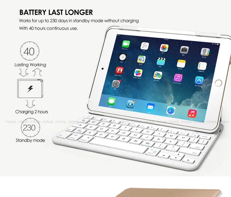 主な機能: 。超薄型デザインワイヤレスbluetooth keybaordスタンドカバーケースipad用空気(ipad 5) 。カム·ウィズマジックストライプが完璧にマッチ用ipadの空気 。自動-自動的に電源にユニットを開いたときにデバイス 。スマートカバー付き自動スリープとウェイクアップ機能にエネルギーを節約 。2で1デザイン、absキーボード+レザーケース 。品質レザーケースを提供してい完全な保護あなたの錠剤傷、擦り傷、ショック; 。プレミアム品質とスタイリッシュなデザインで簡単アクセスにすべてbutoonsと制御 。充電式usbケーブル付属、 。bluetoothバージョン:ブルートゥース3.0 。ワイヤレス操作距離: 10メートル 。バッテリー: 280ミリアンペア充電式リチウムバッテリー 。経由で電源: dc 5ボルトusbポート 。製品サイズ: 242ミリメートルx 175ミリメートルx 8ミリメートル 。正味重量: 428グラム 仕様: 。動作距離に10メートル 。ブルートゥース3.0インタフェース規格 。変調方式: gfsk 。動作電圧: 3.0〜4.2ボルト 。動作電流: <ミリアンペア 。スタンバイ電流: < 0.3mA 。睡眠電流: < 40uA 。充電current≥ 200ma 。スタンバイ時間: > 200日 。充電時間: < 2時間 。リチウムバッテリー容量:ミリ 。無停電作業時間: > 90時間 。リチウム電池寿命: 3年 。リチウムバッテリー仕様: 3.0*20*35ミリメートル 。キー強度: 60±10g 。キーライフ: 3ストローク パッキングリスト: 。1 × bluetoothキーボード 。1 x usb充電ケーブル 。1 ×マニュアル