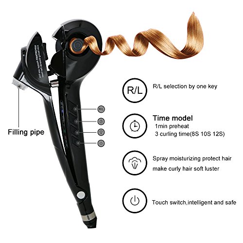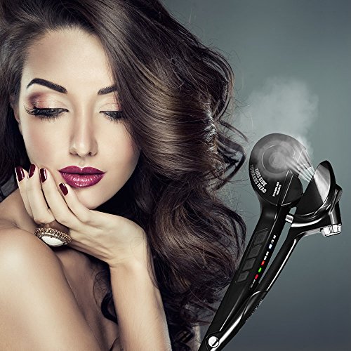 UKLISS Electric Automatic Hair Curler with Steam, Professional Spraying Ceramic Hair Curling Iron Magic Curler Wand, 3 Curls Directions Hair Curler (Black)