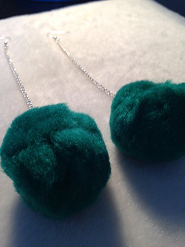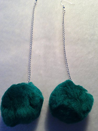 -. Title : Deep Green Pom Pom Long Drop Earrings