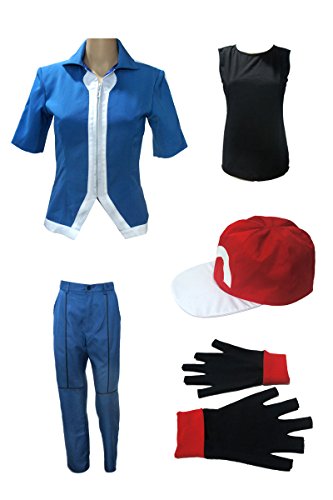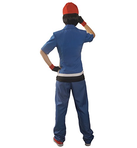 -. Brand : Miccostumes -. Color : Blue -. Department : Mens -. Feature : The outfit for Ash Ketchum includes a blue short sleeves shirt,a black inner sleeveless shirt,pants,a pair of gloves and a hat. / The hat is one size with a circumference of 22.4 inches. / It is for Pokemon X and Y game cosplay. / It is available in size men xs,s,m,l,xl. -. PackageQuantity : 1 -. ProductGroup : Apparel -. ProductTypeName : ADULT_COSTUME -. Title : Miccostumes Men's Pokemon X and Y Ash Ketchum Cosplay Costume