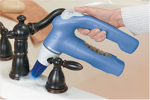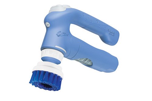 The NEW AND IMPROVED ScumBuster tub and tile scrubber tackles not only the mosts deaded of all tasks - cleaning the bathroom - but busts the dirt and grime everywhere in your house, yard or garage. The cordless scrubber now has an on board cleaning system that allows you to pour any liquid based cleaner and then just SPRAY and GO! It effortlessly cleans all types of surfaces, including spots on tile, tubs, countertops, carpets, outdoor furniture, barbecues, car bumpers and grills, tires hubcaps, bathtubs, pool surfaces, tiled walls and hundreds of other surfaces with a variety of scrubbing pads and brushes. The ScumBuster can be safely submersed in water buckets, sinks or tubs.Feature