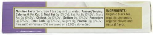 -. Feature : Pack of Twelve, 8-Count Bag (Total of 96-Counts) / USDA Certified Organic / Contains caffeine / Natural ripe raspberry essence in a fine black tea with cinnamon and cloves Spiced Tea Great hot or iced / Convenient for sample tasting, gifting or basket decoration