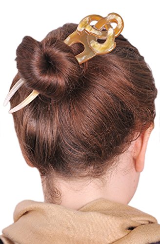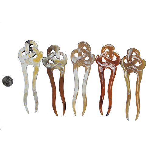 Marycrafts Translucent Amber Honey Celtic Knot Buffalo Horn Hair Fork, Hairfork, Hair Pin, Hairpin, Hair Accessory, Hair Toy Handmade 6.5"
