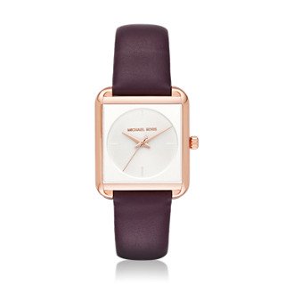 Studio : Michael Kors Watches Publisher : Michael Kors Watches Binding : Watch Product Description Stainless steel case. Smooth leather strap with buckle closure. Tank face. Three-hand analog display with quartz movement. Textured dial features rose gold-tone hands and Michael Kors detailing. Water resistant 5 ATM. Display case included. Imported. 0
