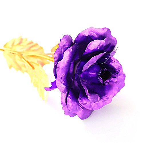 24K Gold Foil Rose Long Stem Rose Dipped in Gold with Gift Box Valentine's Day Gift for Her (purple)
