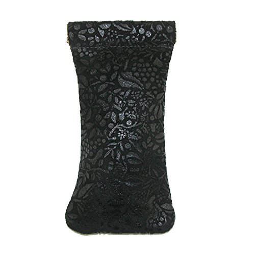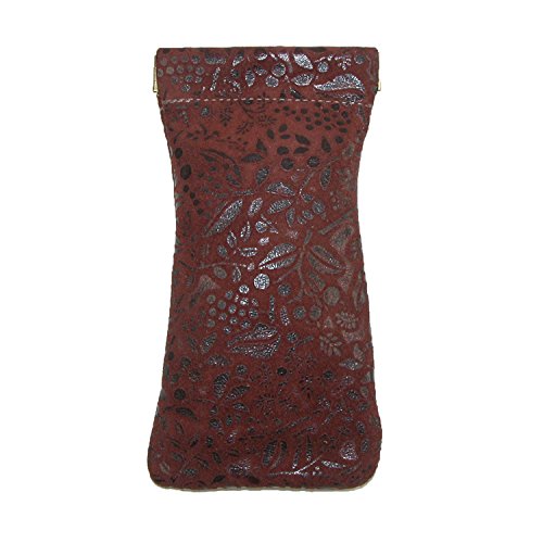CTM Women's Leather Floral Print Eyeglass Holder and Case