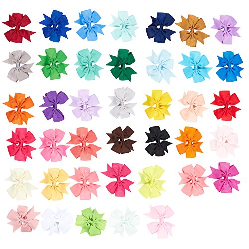 40-Pack Pinwheel Hair Bows - Grosgrain Ribbon Hair Clips, Hair Bow Set for Girls, Teens, Toddlers, Assorted Colors, 3.15 x 0.39 x 3.14 Inches