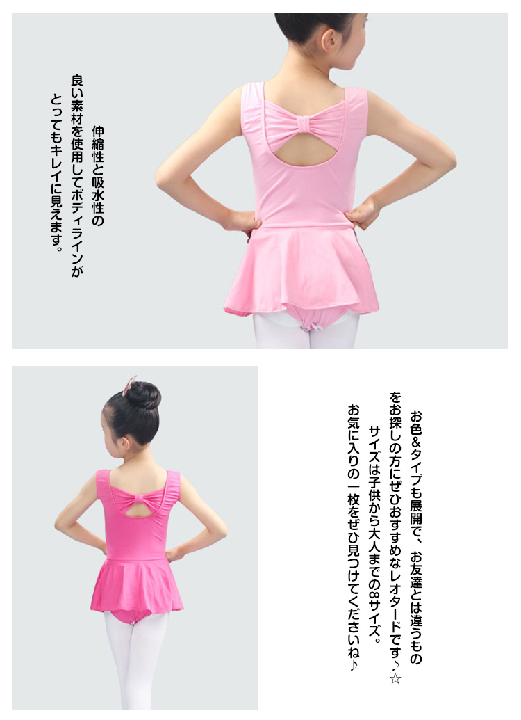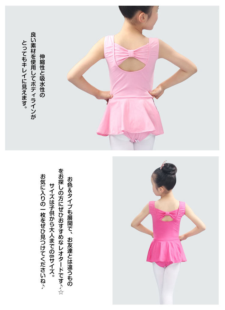 | 当店一番人気の可愛くて上品なデザインが自慢のレオタードです!!踊るたびにふんわり揺れるスカートが素敵♪後ろにが付いたリボンモチーフがとてもcute。伸縮性と吸水性の良い素材を使用してボディラインがとってもキレイに見えます。お色&タイプも展開で、お友達とは違うものをお探しの方にぜひおすすめなレオタードです♪☆サイズは子供から大人までの8サイズ。お気に入りの一枚をぜひ見つけてくださいね♪ | |