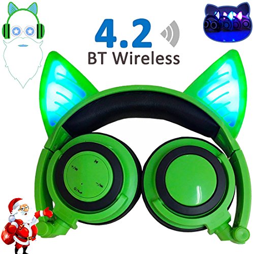 -. Feature : ♪OPTIONAL COMMUNICATIONS: [2017 New Version] Bluetooth wireless + wired. With Bluetooth function and a standard 3.5mm headphone jack, you can choose the connection method as you like. It can be connected to most bluetooth devices like your phone, tablet, laptop, mp4, mp5 via bluetooth whenever you need. / ♪RECHARGEABLE &DURABLE & COMFORTABLE: Come with a mini USB charging cable. Made of environment TPE material, safe and comfortable to wear. No oppressive feeling. With latest 75db Noise Reduction Technology Built-in volume-controlled circuitry that ensures the sound is within levels recommended .Suitable for kids ,children ,girls, boy's eardrums. / ♪COLORFUL AND ATTRACTIVE: Cosplay Fancy Cat Ear with Glowing Lights Design,Cute and Fashion.Christmas styled and flexible makes for a Unique Gift idea for friends, kids, girls, woman, girlfriend, wife, daughter, Cosplay fans. / ♪20 Hours LED Flashlight Time: Led flashlight time up to 20-30 hours and glowing time is about 40 hours. Meantime it is better for children to wear and listen about 2 hours, to protect children's hearing and health. / ♪PORTABLE: Not only can be replaced a new stylish headband, but also folded to carry and storage anywhere you want. Take it to travel, sports, dance or other indoor or outdoor activities.