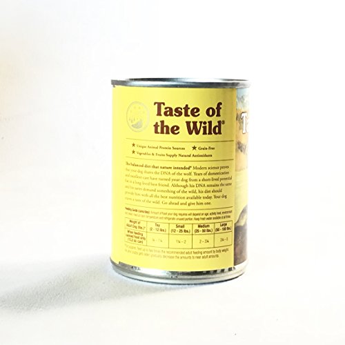 Taste of the Wild dry dog formulas is formulated with K9 Strain Probiotics, beneficial bacteria that support digestive and immune systems and help your dog maintain an active lifestyle. K9 Strain Probiotics are developed specifically for dogs and processed under strict quality and safety standards to ensure purity. Every pound of Taste of the Wild is guaranteed to provide 80,000,000 colony forming units (CFU) of live, active probiotic cultures. A great tasting complement to the dry taste of the wild formulas will satisfy even the most finicky dogs. A complete and balanced formula, this canned food can also be fed as your dog's sole diet. The balanced diet that nature intended. Modern science proves that your dog shares the DNA of the wolf. Years of domestication and excellent care have turned your dog from a short-lived potential foe to a long-lived best friend. Although his DNA remains the same and his tastes demand something of the wild, his diet should provide him with all the best nutrition available today. Your dog craves a taste of the wild. Go ahead and give him one.Feature