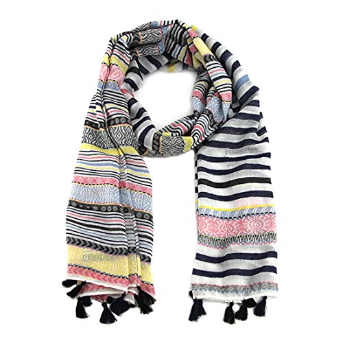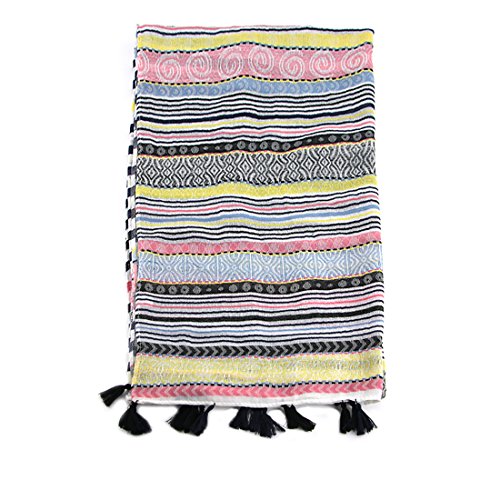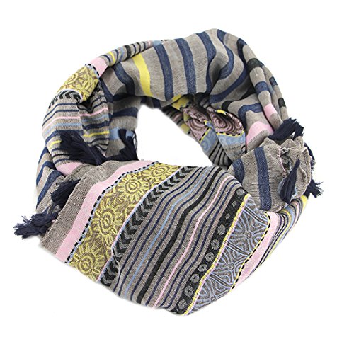 -. Feature : Hand P.R.Inted - Beautiful infinity scarves best maintained when hand washed cold, No bleach, No wring or Twistin, Hung or Lay Flat to Dry / Materials: 75% Rayon, 13% Cotton, 12%Metallic / Easily become one of your new favorite fashion accessory this season / Spited infinity scarf featuring colorful tassels and metallic threading / Size: 70.87" x 26.77"