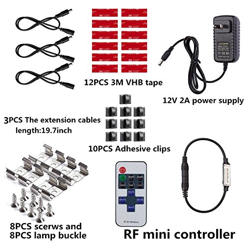 Application: DIY lights,ceiling corners,backlight. Widely used for counter decoration lighting, fitting to all types of under cabinet, book shelves and kitchen cupboards.Dimmable,controlled them by remote controller, convenient to adjust three level brightness; Turn ON/Off don't delay a second