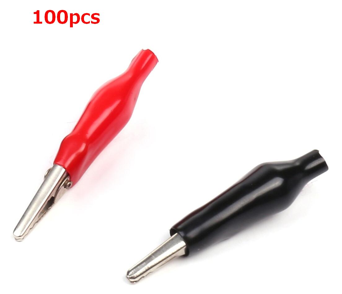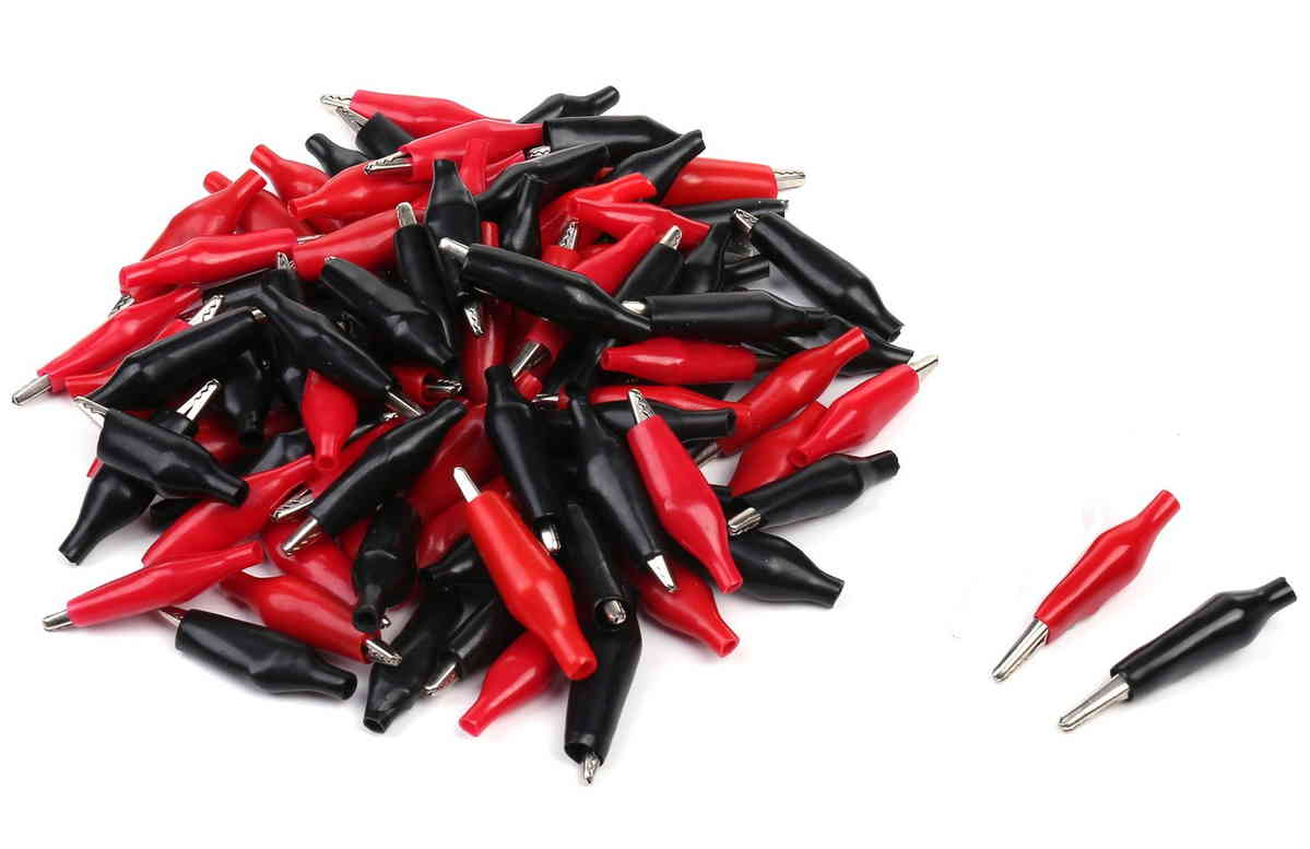 【100個セット】 ワニ口 クリップ ミノムシ 赤 黒 各50個セット 電気 電子 工作 DIY 実験 測定 ロガー