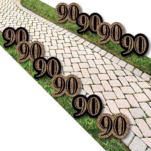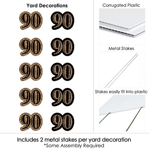 Adult 90th Birthday - Gold Lawn Decorations - Outdoor Birthday Party Yard Decorations - 10 Piece