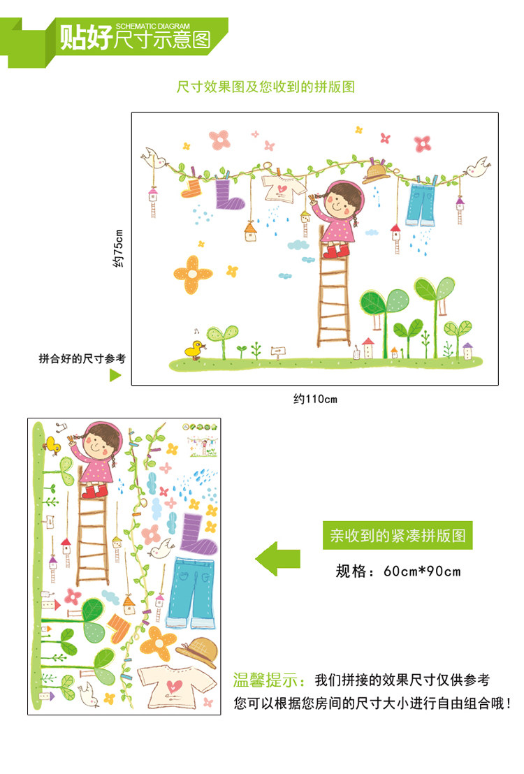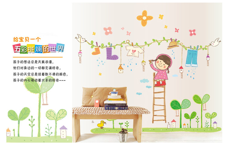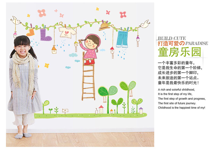 儿童房公主卧室床头背景贴画幼儿园墙壁装饰卡通女孩可移除墙贴纸
