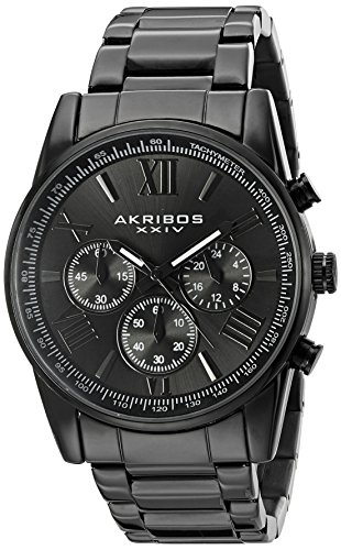 -. Title : Akribos XXIV Men's AK865BK Round Black Dial Chronograph Quartz Black Bracelet Watch