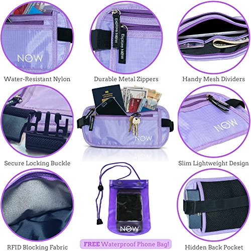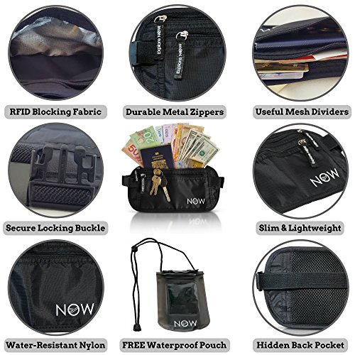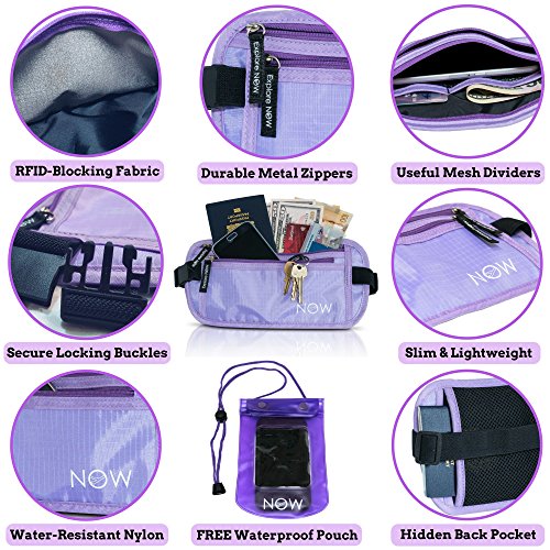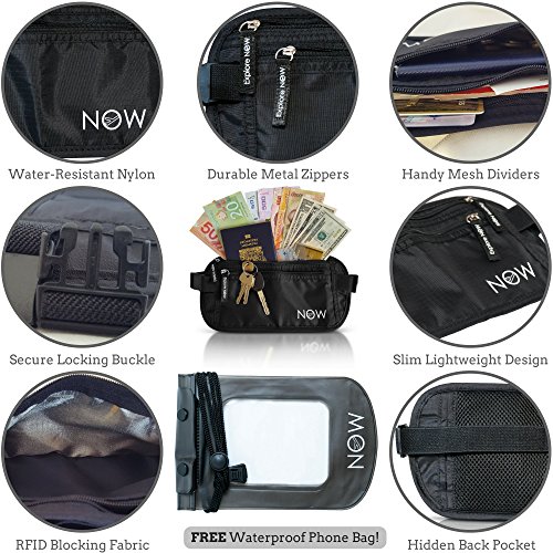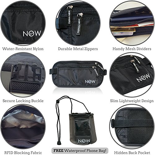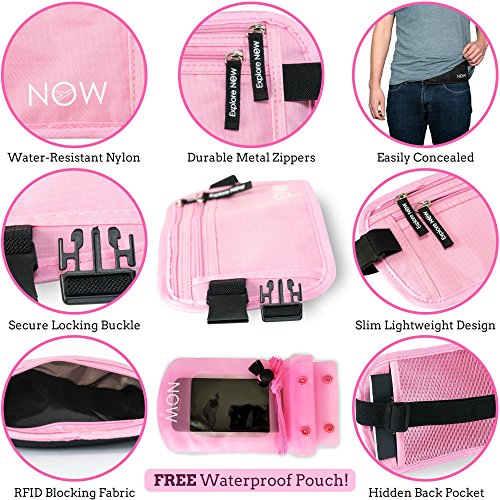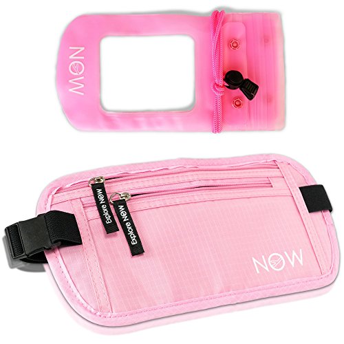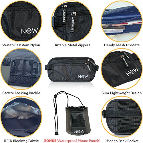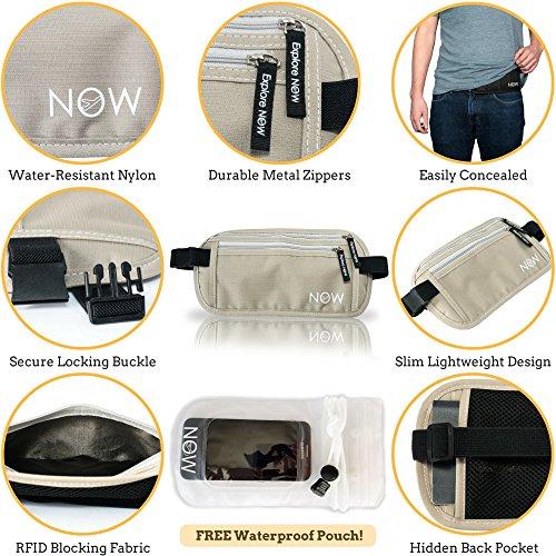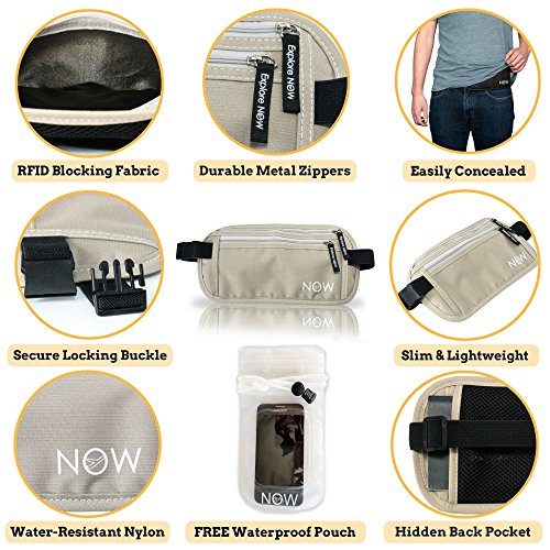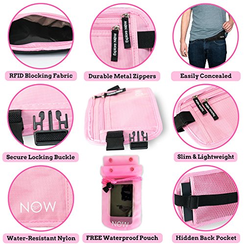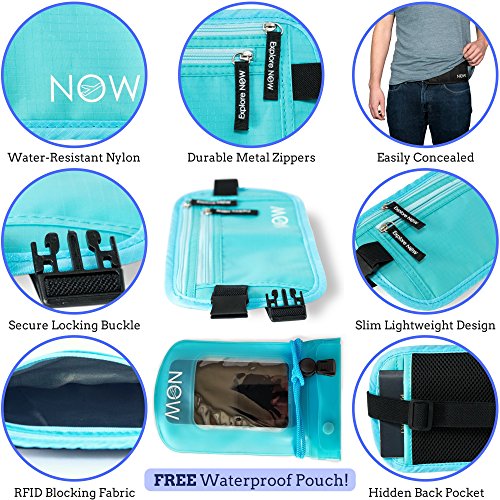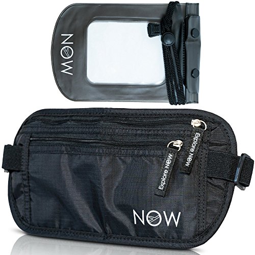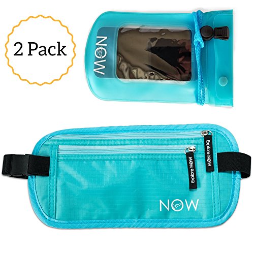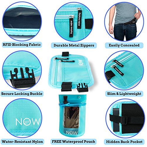| Hidden RFID Money Belt w/ Waterproof Neck Pouch for Travel, Running, Swimming, Hiking, Biking, ... |