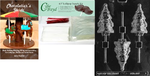 Cybrtrayd Crafty Full Santa Lolly Chocolate Mold with Chocolatier's Bundle of 25 Lollipop Sticks, 25 Cello Bags, 25 Red Twist Ties and Chocolatier's Guide
