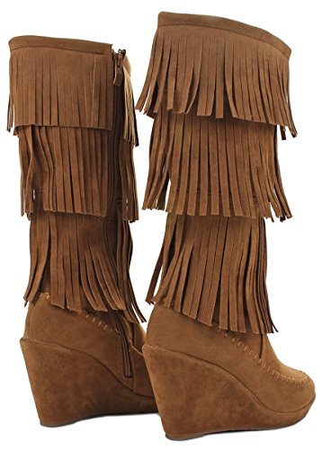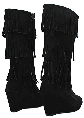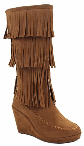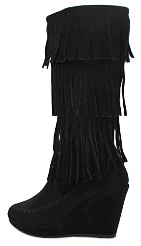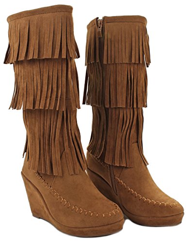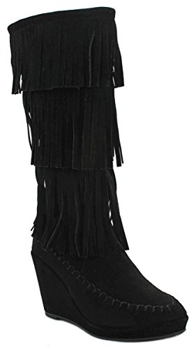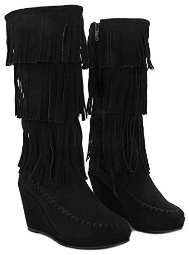 Binding : Apparel Product Description A western, bohemian look is easy to create in these fringed faux suede books! Featuring a round toe, soft faux suede upper, moccasin toe design, designed with three tiers of fringe around the shaft, stitching details. Finished with a wedge heel, a lightly cushioned insole and rubber sole for extra comfort; a side zipper closure for easy on/off. Product by Forever. 0