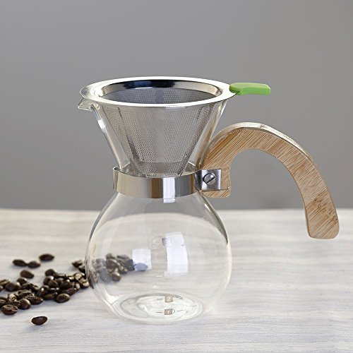 -. Title : SMKF Pour Over Coffee Carafe | 2 Cup Capacity | Hand Crafted Glass with Handle | Reusable Filter | Perfect for Cold Brew Coffee